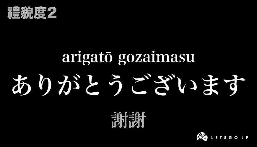 | ありがとう | arigatō | 謝謝 (上對下、較親近的人之間使用) |
