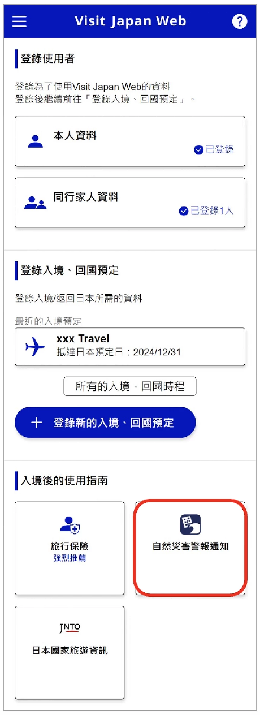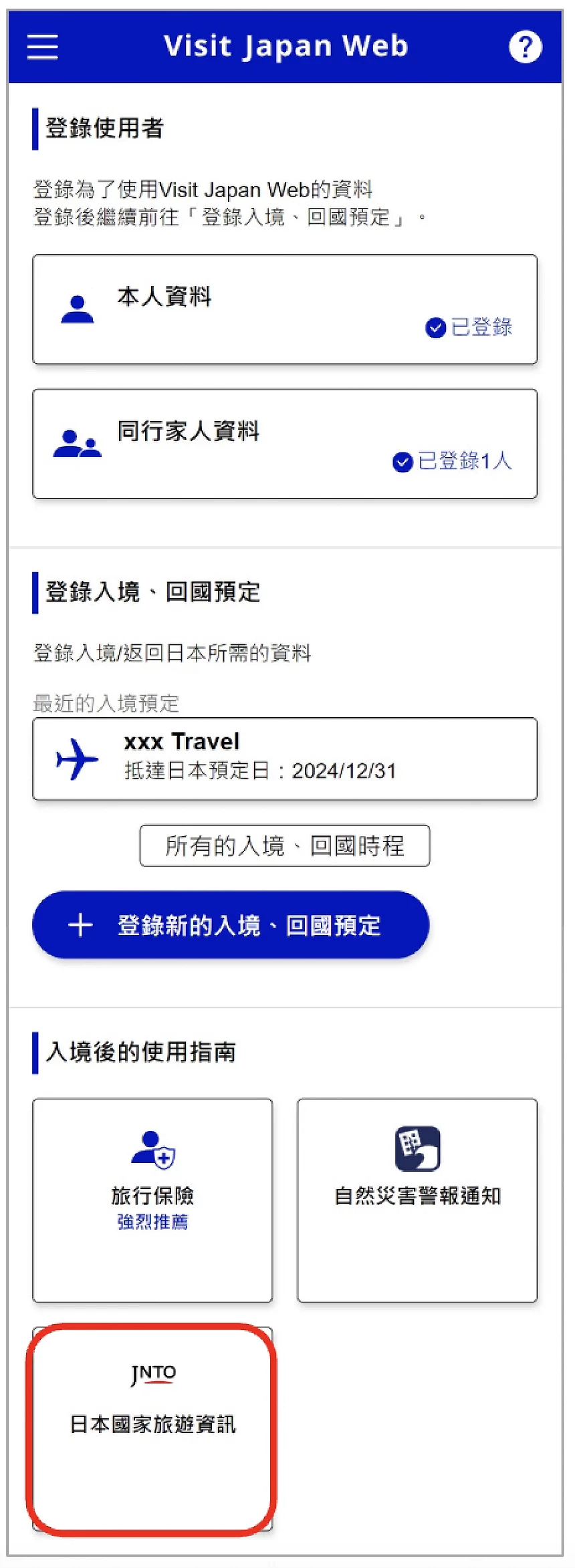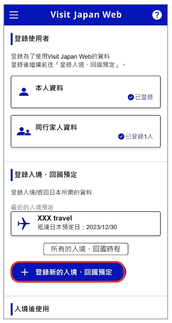 Visit Japan Web 教學 ③ 填寫:登錄入境、回國預定