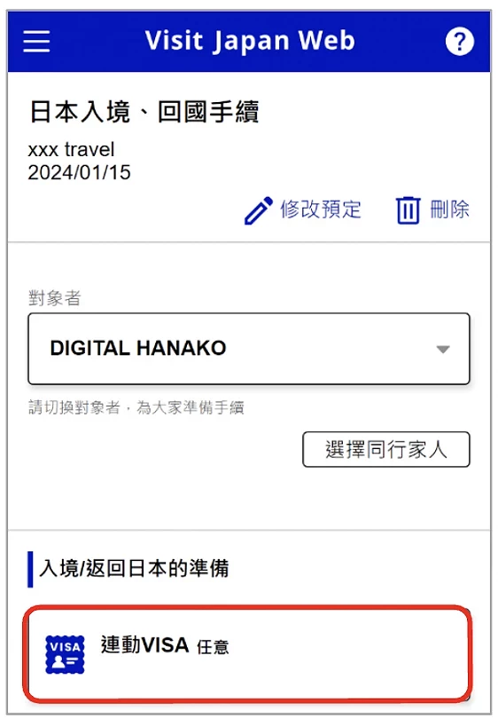 Visit Japan Web 教學 ④ 填寫:連動 VISA (任意)