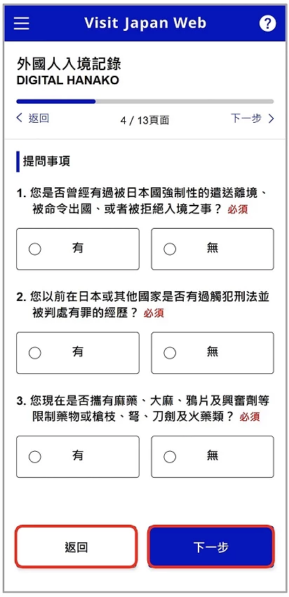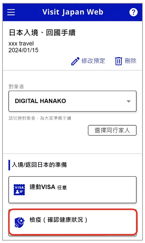 Visit Japan Web 教學 ⑤ 填寫:檢疫(確認健康狀況)