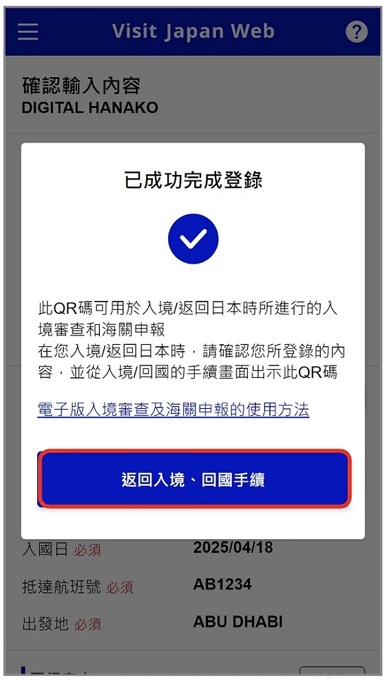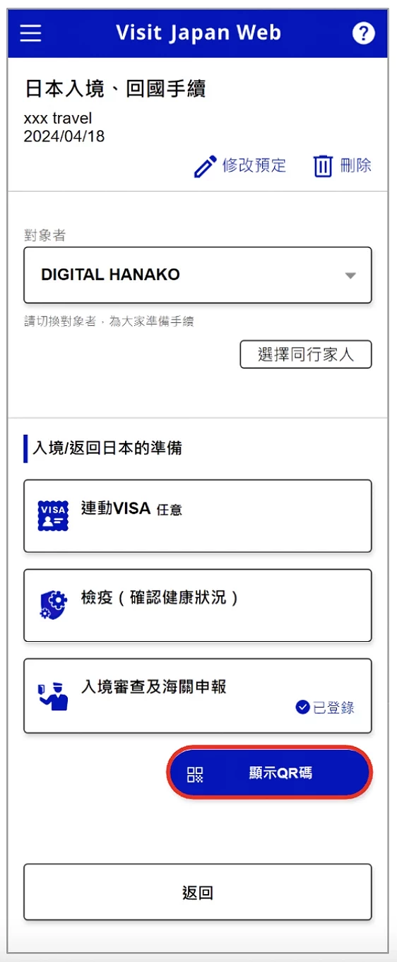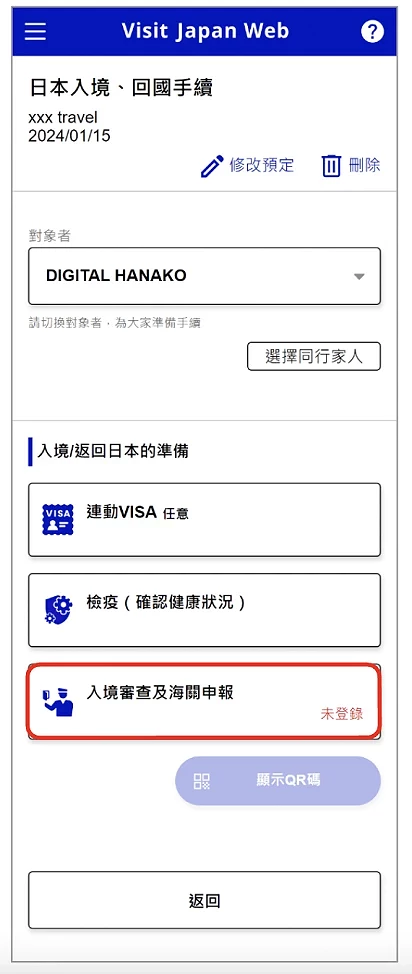 Visit Japan Web 教學 ⑥ 填寫及 QR code 生成:入境審查及海關申報登錄