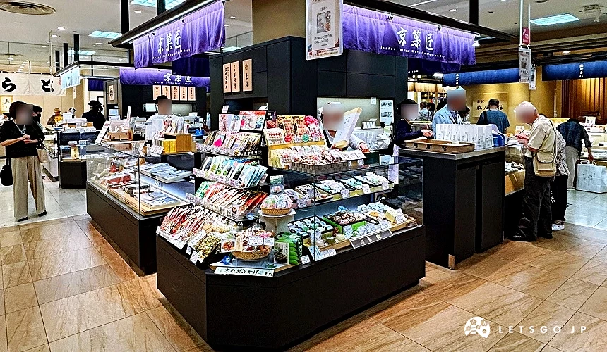 JR京都伊勢丹地下1樓是購買京都伴手禮的絕佳地點,集結了眾多老字號和菓子、洋菓子品牌,例如老牌的「虎屋」、「龜屋良長」薄切羊羹等,以及「MALEBRANCHE」的「茶之菓」等在地人氣甜點,讓旅客能一次購齊各種經典與創新的京都伴手禮,同時還有京都的日本酒可供選購!