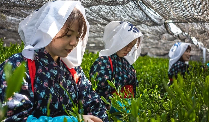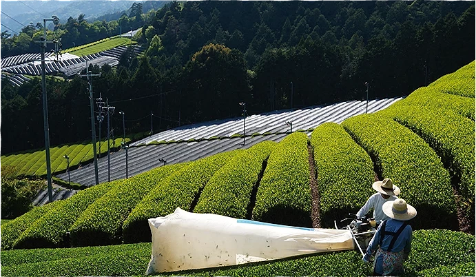 茶樹在採收前約 20~30 天以葦簾或黑網遮光,降低光合作用、抑制兒茶素生成,使茶葉更甘甜、呈深綠色並提升鮮味(旨味)。