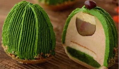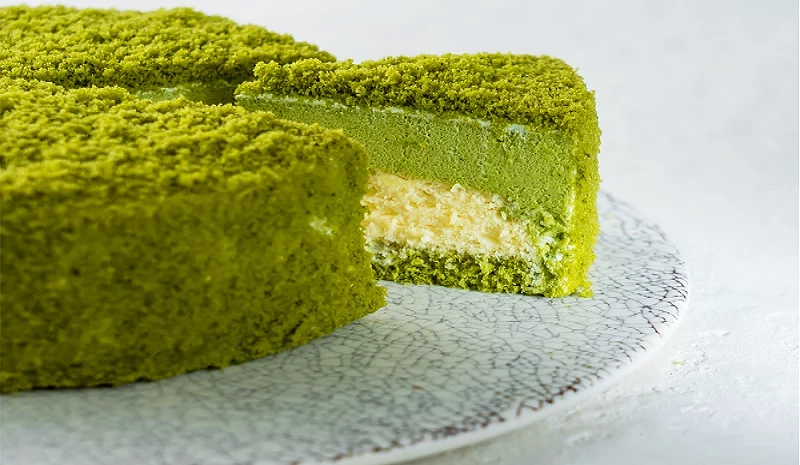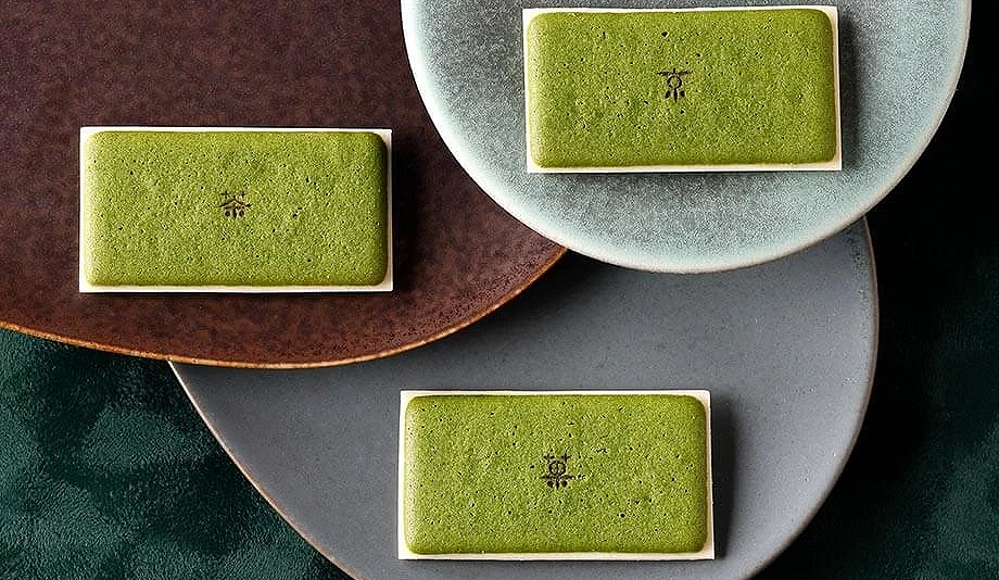 「はんなりチーズケーキ」抹茶起司蛋糕外觀是輕盈蓬鬆的抹茶粉,內層用兩種不同口味的起司蛋糕層疊而成,追求濃鬱順口的口感。下層是口感柔和清爽的起司舒芙蕾,上層則是用馬斯卡彭起司和法式白起司製成的濃鬱抹茶起司慕斯。宇治石磨抹茶的清爽微苦與蛋糕的優雅微苦完美融合,入口即化,令人回味無窮。
