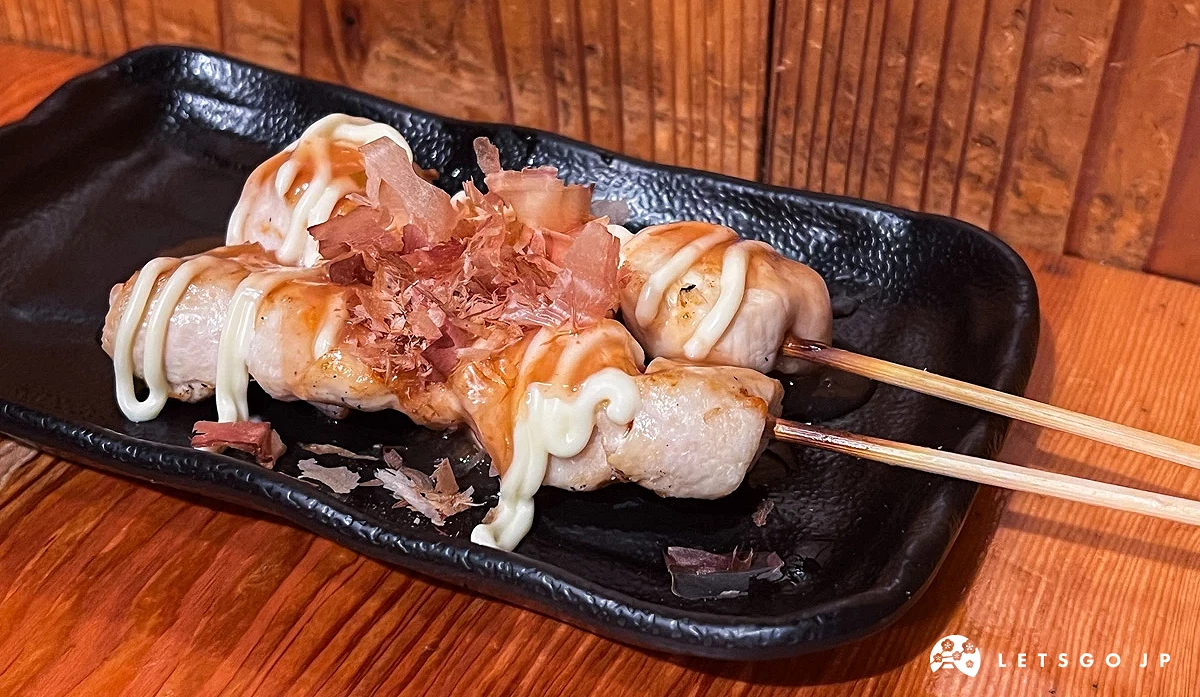 這一道以雞里肌肉製成的串燒,上面淋上帶有鰹魚香氣的梅子醬,再搭配濃郁的美乃滋。梅子的酸味中和了雞肉的油脂感,吃起來酸酸甜甜,清爽開胃,肉質柔嫩,特別受女性客人歡迎。