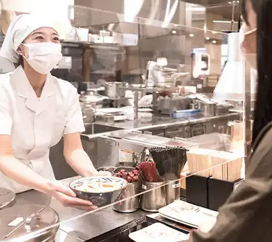 選好主餐與配菜後,到櫃檯結帳。日本多數分店接受現金或電子支付。
