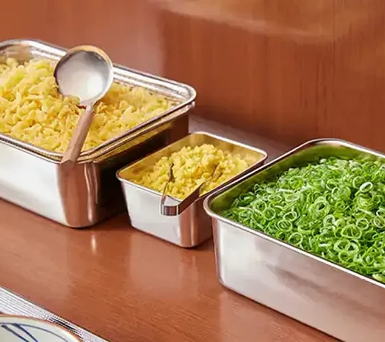 丸龜製麵的魅力之一,就是能自由搭配各式「免費佐料」。在結帳後的調味區,可自行取用多種經典配料,包括「薑末」增添清爽辛香,能中和炸物油膩、「蔥花」提升湯頭鮮味,讓烏龍麵更有層次、「天婦羅花(天かす)」增添香氣與酥脆口感,是丸龜迷的必加選項!這些佐料皆可依個人喜好自由添加,無論是想吃清淡風還是重口味,都能調出最合自己口味的一碗烏龍麵。