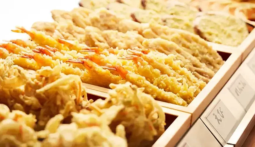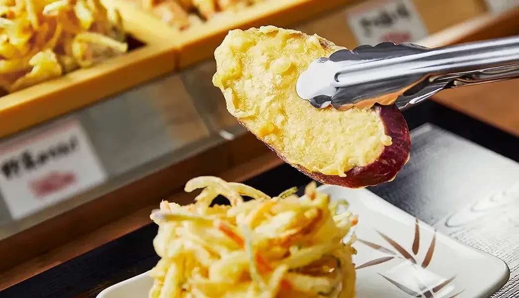 天婦羅炸物是搭配烏龍麵不可少的靈魂配角。外酥內嫩的口感,常見品項如炸蝦、炸蔬菜、炸雞、炸地瓜等,可依個人喜好自由搭配,打造專屬的一餐,每份炸物的價格約落在110~210日圓之間。