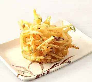人氣長紅的炸蔬菜天婦羅,是丸龜製麵天婦羅炸物台上最受歡迎的經典之一。選用多種新鮮蔬菜切絲混合,以恰到好處的麵糊比例現炸,外酥內嫩、香氣撲鼻。咬下瞬間,蔬菜的自然甜味與香脆口感完美融合。可慢慢細嚐其層次,也能豪邁大口咬下,享受滿滿蔬菜的鮮甜。無論搭配熱烏龍麵、冷麵,或單吃、撒少許鹽、沾醬享用,都能感受丸龜職人對油炸工藝的極致堅持。