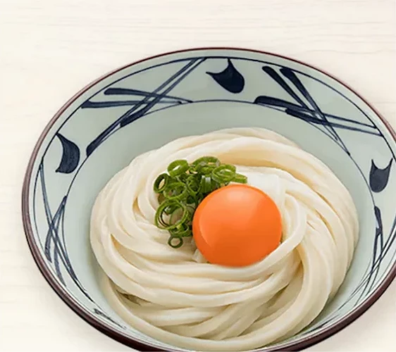 「蛋拌烏龍麵」是香川當地最具代表性的經典吃法之一。將剛從鍋中撈起、熱氣蒸騰的烏龍麵盛入碗中,立刻打入一顆生雞蛋,再淋上特製的柴魚風味醬油,趁熱迅速攪拌。麵條的餘溫讓蛋白微熟、蛋黃滑順濃郁,與 Q 彈的麵條完美融合,形成香氣濃厚的「蛋香烏龍」。不同的醬油量與蔥花、海苔、芝麻等配料變化,也能帶出多層次風味。簡單卻極致,是丸龜製麵最能展現「現煮、現拌」職人精神的一碗。
