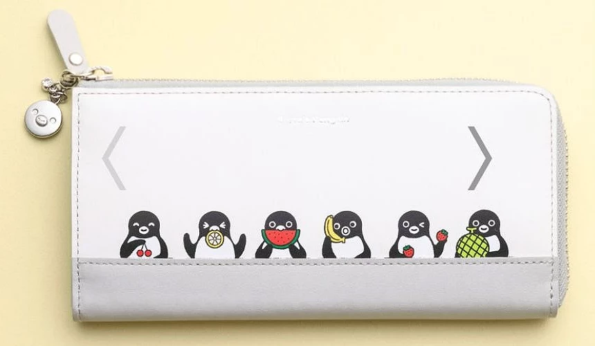 限量販售的 「Suica 企鵝真皮長夾」以象牙白與柔灰拼色,呈現高雅氣質,搭配上彩色水果和 Suica 企鵝的插圖,穩重中帶點童趣。長夾內含12個卡片夾層、2個紙鈔夾、1個零錢袋與多用途口袋,兼具美觀與實用性。另有粉色、米色同系列款式可選。