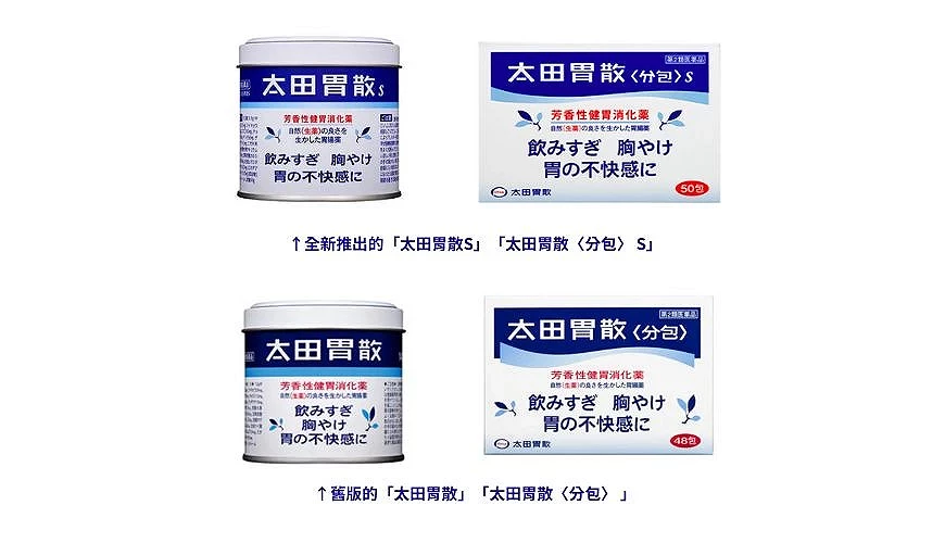 此次太田胃散進行產品翻新,日本將逐漸由新版 S 系列取代舊版,但於店面仍可能同時看到舊版與新版的情況,還請大家注意喔!