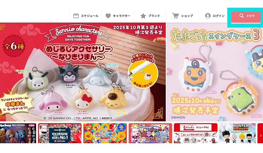 ① 到官網右上角點選「搜尋」圖片來源:Gashapon 官網