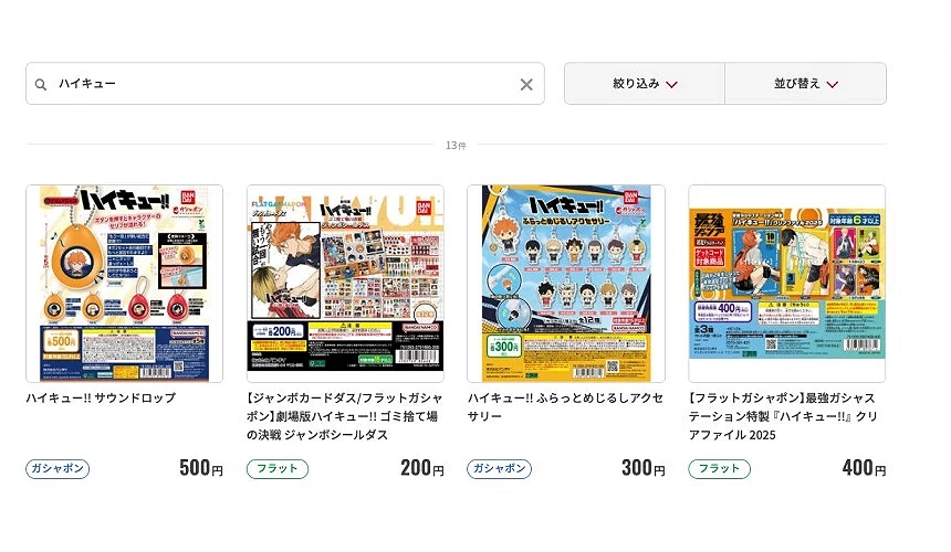 如果已經鎖定想入手的扭蛋,不想一間一間店找,推薦可以直接到官網查詢。把握一個大原則,就是輸入扭蛋的「日文名稱」,按下搜尋,就可以找到喜歡的扭蛋是否還有庫存,以及日本哪些店鋪設有機台。